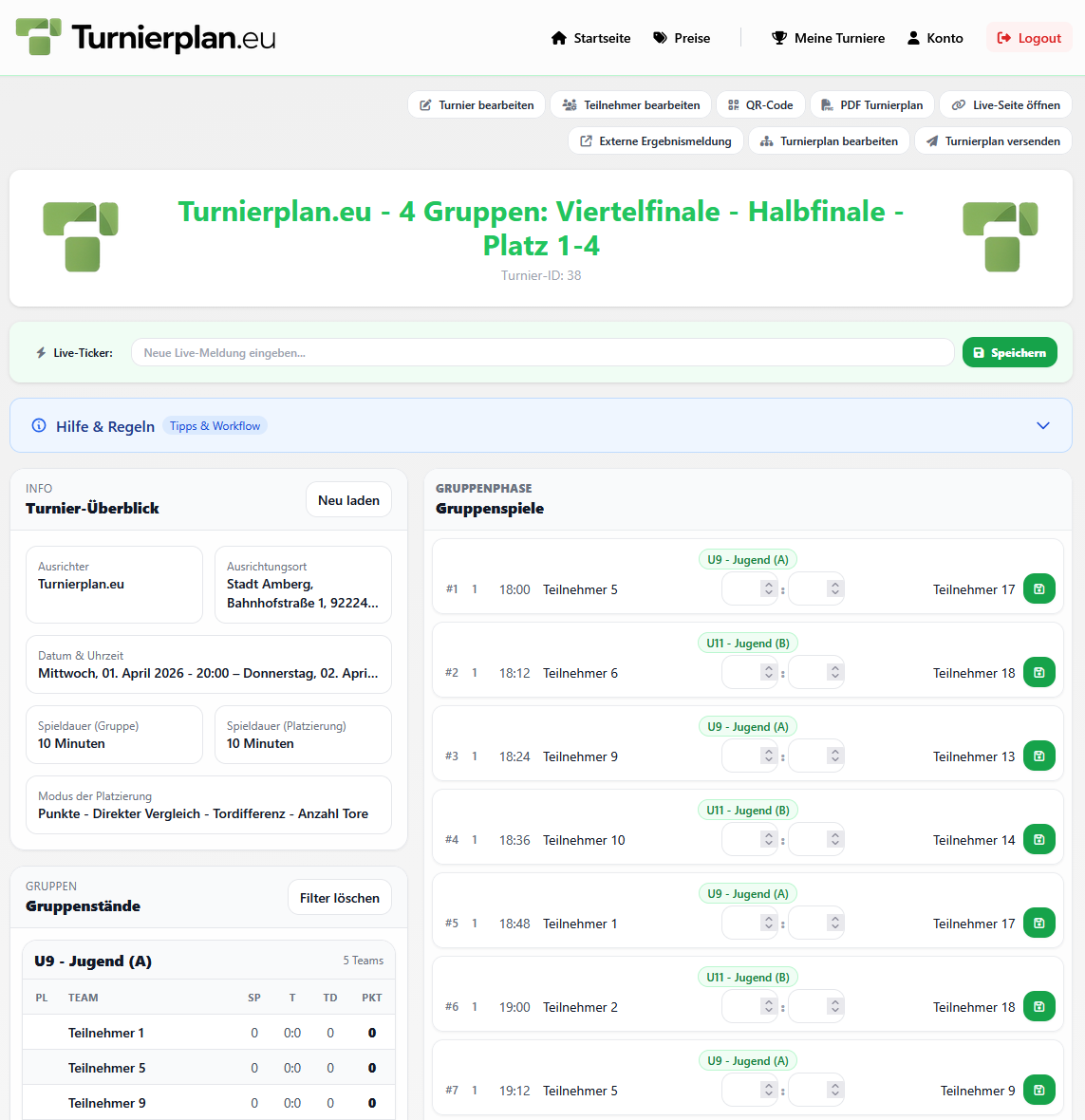 So trägst du Spielergebnisse ein und aktualisierst Tabellen und K.-o.-Runden automatisch.