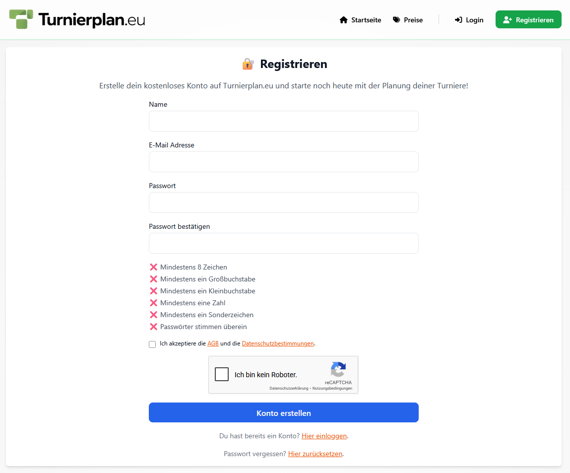 So erstellst du ein Konto bei Turnierplan.eu und startest direkt mit deinem ersten Turnier.